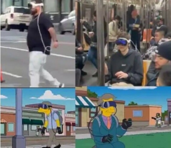 A world one step away from Dystopia! People are walking around like flies without a head with Apple's new Virtual Glasses, the Simpsons predicted again (06.02.2024) | 389 views | newsexchange Apple's nearly $4,000 virtual reality headset, the Apple Vision Pro, hit store shelves Friday, and early adopters have already been spotted out in the wild. ... | Similar