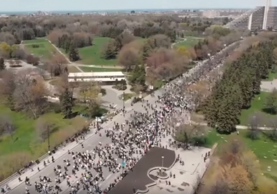 PROTEST V MONTREALU, KANADA - POSNETEK IZ DRONA (01.05.2021) (03.05.2021) | newsexchange ... ... | Podobno