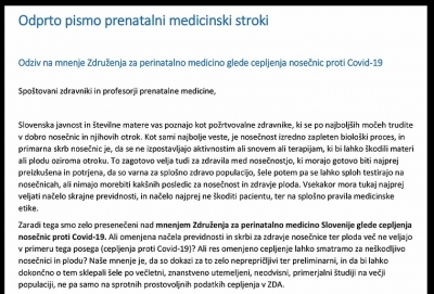 OBVEZNO PREBERITE ODPRO PISMO -Analizo glede cepljenja nosečnic kot odgovor na mnenje medic. stroke (15.05.2021) | newsexchange ... SPODAJ OBJAVLJAMO PREJETO PISMO, POLNO ARGUMENTOV, PRIMEROV, STROKOVNIH RAZLAG ... | Podobno