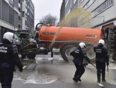 EU-SEARCH NOVICE | Policija EU varuje elite pred kmeti, ki jih škropijo s tekočimi gnojili ...