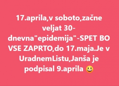 17.aprila,v soboto,začne veljat 30-dnevna"epidemija"-SPET BO VSE ZAPRTO (12.04.2021) | newsexchange ... /div ... | Podobno