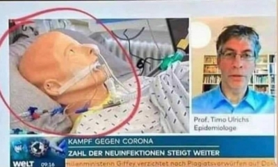 LAGANJE ZLOČINCEV NE POZNA MEJA: Ponekod po televiziji prikazujejo lutke kot težke korona bolnike na intenzivni (11.07.2021) | newsexchange ... Posnetek bolnika z zlagano korono na intenzivni./div Poročanje zdravnika so predvajali po televiziji kjer so prikazali s prirejeno lutko kot človeka na raspiratorju v ... | Podobno