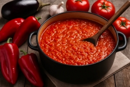 Če bi morali izbrati enega samega kralja balkanskih namazov, bi bil to gotovo ajvar. Njegova priprava je skorajda obred – najprej dolgotrajno pečenje mesnatih paprik na žaru ali v pečici, nato natančno lupljenje in odstranjevanje semen, sledi počasno kuhanje z oljem, dokler masa ne postane svilnato gladka.