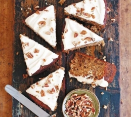 Kolač iz bučk in ameriških orehov z javorovim prelivom