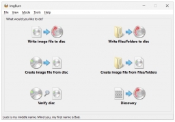 ImgBurn is a lightweight CD / DVD / HD DVD / Blu-ray burning application. ImgBurn supports a wide range of image file formats - including BIN, CCD, CDI, CUE, DI, DVD, GI, IMG, ISO, MDS, NRG and PDI. It can burn Audio CD's from any file type supported via DirectShow / ACM - including AAC, APE, FLAC, M4A, MP3, MP4, MPC, OGG, PCM, WAV, WMA and WV. You can use it to build DVD Video discs (from a VIDEO_TS folder), HD DVD Video discs (from a HVDVD_TS folder) and Blu-ray Video discs (from a BDAV / BDMV folder) with ease. It supports Unicode folder/file names, so you shouldn't run in to any problems if you're using an international character set.