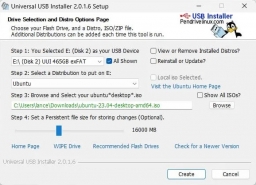 The Universal USB Installer is easy to use. Simply choose a Live Linux Distribution, the ISO file, your Flash Drive and, Click Install.