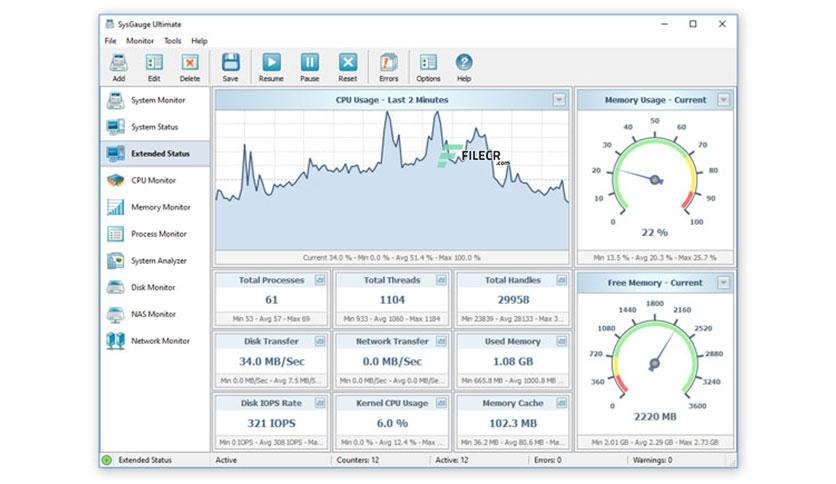 SysGauge is a free system and performance monitoring utility that enables you to monitor the CPU usage, memory usage, network transfer rate, operating system performance, file system performance, USB performance, disk space usage and many other performance metrics.
