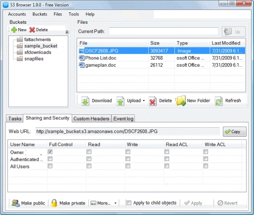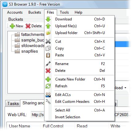 S3 Browser is a free client interface for users of the Amazon S3 and CloudFront service. It provides an easy to use GUI to manage your storage buckets and allows you to upload and download files.