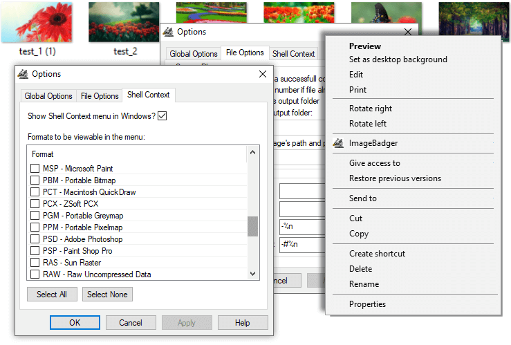 Batch convert and process images from the Windows Explorer right-click menu. ImageBadger Image Converter is a handy application that has the power to add an extra option to your right-click or context menu. The program can load and save over 150+ image formats and compression methods.