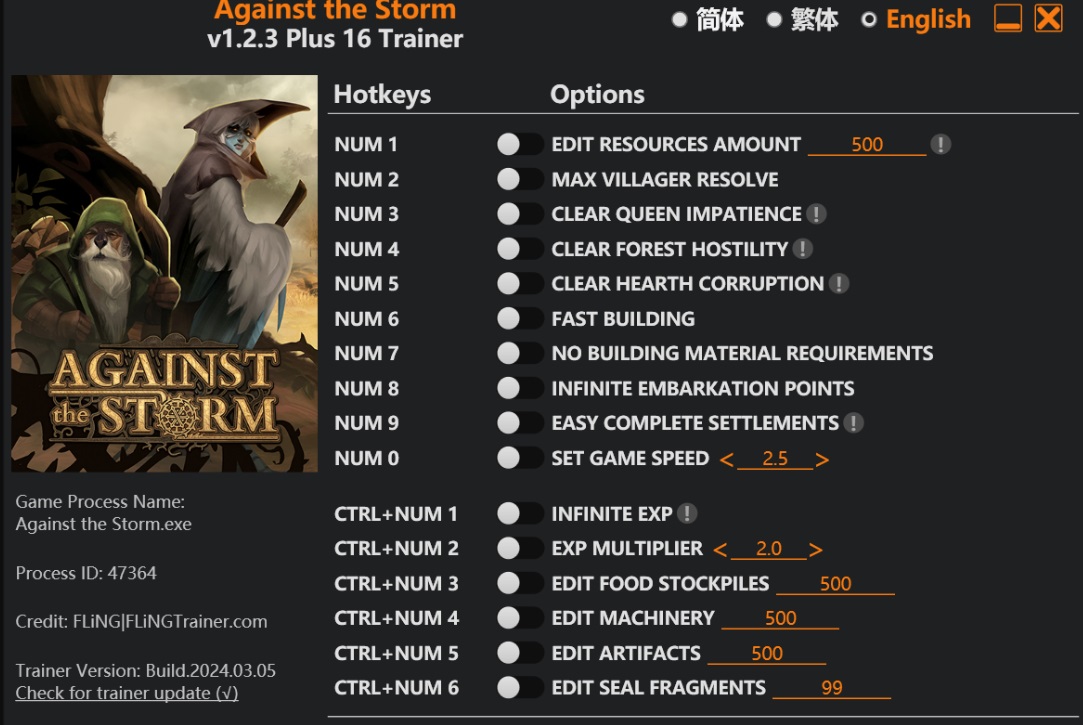 GAME TRAINER | Against the Storm v1.2.3 Plus 16 Trainer (trainer) ...