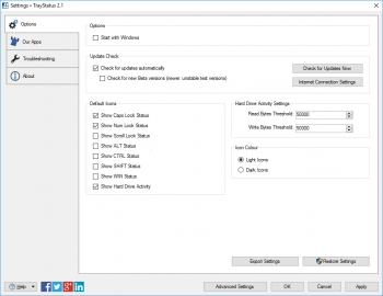 TrayStatus runs in your system tray and indicates the status of your CapsLock, NumLock and ScrollLock keys, which can be useful if your keyboard does not come with an indicator light. ..