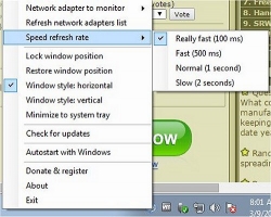 | Ever wanted to find out exactly what the real speed of your ADSL internet connection or LAN is?<br><br>My Network Speed will monitor the network card in real time and display the speed (download / upload) in a tiny window in the systray.
