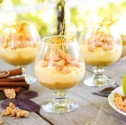 Jesenska sladica v kozarcu: vanilijeva krema, hruške, drobljenec