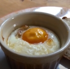 Jajce na oko v ramekinu, s šunko, sirom in zelišči