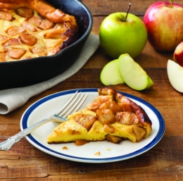 Po jabolkih polijemo testo in ponev postavimo v pečico za 20 do 30 minut.