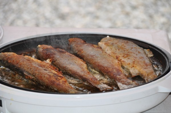 Mlado čebulo očistimo in zrežemo na tanka kolesca. Česen olupimo in drobno sesekljamo. Peteršilj drobno sesekljamo, nekaj lističev prihranimo za dekoracijo. V ponvi segrejemo olje in fileje popečemo po vsaki strani nekaj minut. V skodelici gladko razmešamo kislo smetano ali čvrsti jogurt, žlico pomarančnega soka, sol in poper.
