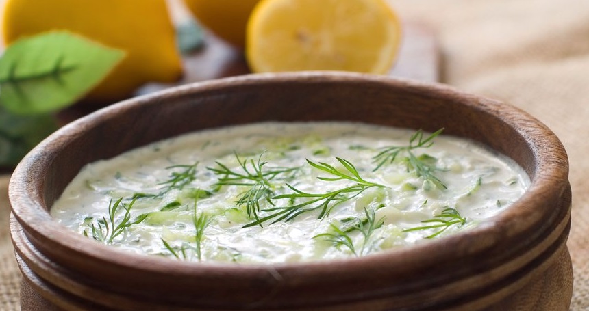 V električnem kuhinjskem mešalniku (blenderju) v gladko zmes zmešamo jogurt, strt česnov strok, limonin sok, feta sir in olivno olje. Po okusu začinimo s poprom in soljo.