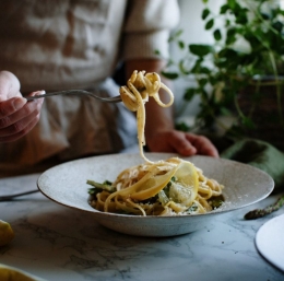 KUHINJA.COM | Kremasti špageti z limono in šparglji iz enega lonca ...