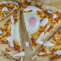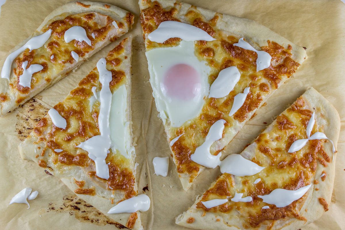 Nato damo na pizzo surovo jajce in jo pečemo še toliko časa, da jajce zakrkne.