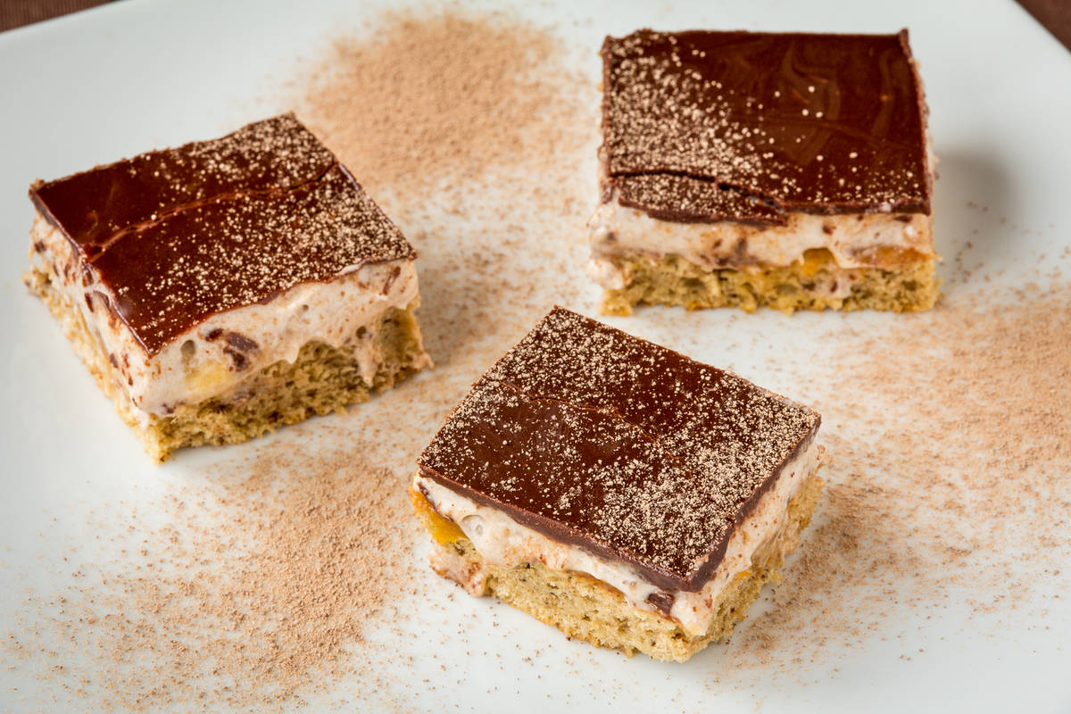 Biskvit najprej namažemo z marelično marmelado, nato pa z bananinim premazom.