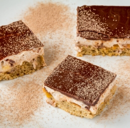 Biskvit prelijemo s čokoladno glazuro.