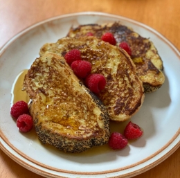 Na vsaki strani ga pecite 2 do 3 minute oziroma dokler ne postane zlato-rumen in zapečen. Šnite postrezite z narezkom ali s sadno marmelado.