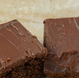 Medtem ko se testo peče, pripravimo preliv. Čokolado narežemo ali nalomimo na majhne koščke, ki jih stresemo v ognjevarno skledo. Dodamo smetano, maslo in sladkor ter sestavine nad vodno kopeljo segrevamo toliko časa, da se čokolada stopi. Skledo odstavimo in sestavine dobro premešamo, da dobimo gladko čokoladno zmes, s katero prelijemo še topel biskvit. Počakamo, da se pecivo ohladi na sobno temperaturo, potem pa ga za nekaj ur shranimo v hladilnik.