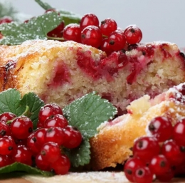 5 Preden postrežemo, pecivo malo ohladimo, okrasimo s svežim ribezom in potresemo s sladkorjem v prahu. Pecivo je najboljše še mlačno.