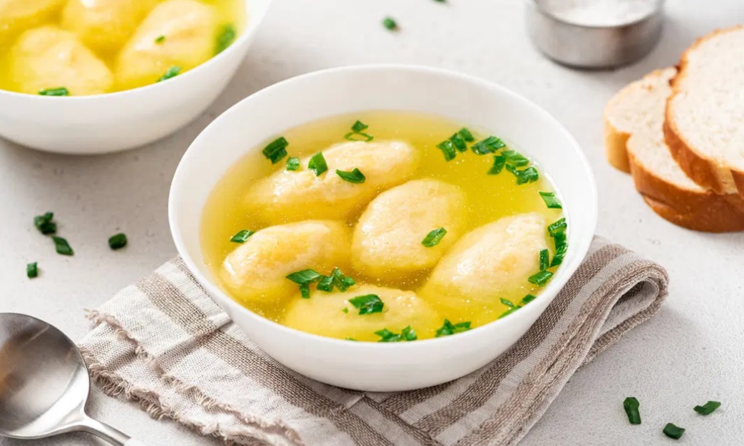 3 Juho zavremo in z dvema žličkama iz mase oblikujemo knedlčke, ki jih dajemo v juho. Ko porabimo vso maso, juho pokrijemo in ob vretju kuhamo 10 minut.