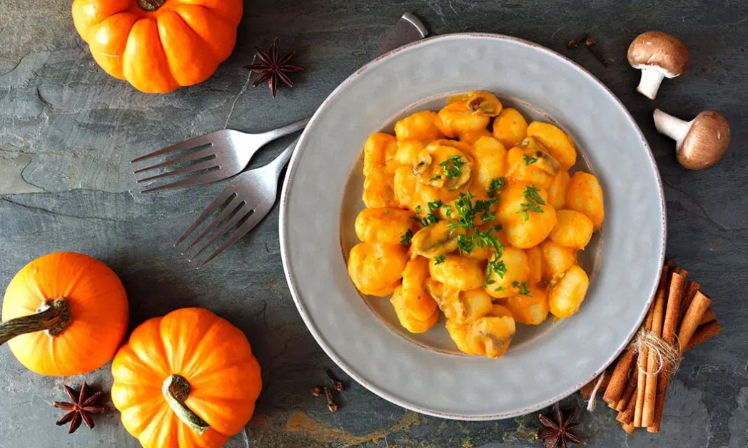Uživajte v tej okusni kombinaciji krompirjevih njokov z bogato in kremasto bučno omako!