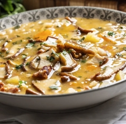 Juha z gobami, krompirjem in hrustljavo slanino je okusna in nasitna jed, ki bo popestrila vaše obroke v hladnih dneh.