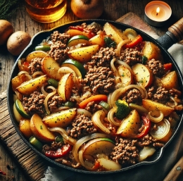 Če iščete hitro in preprosto jed, ki bo nasitila vso družino, je ponev z mleto govedino in krompirjem odlična izbira. Ta jed združuje okusno mleto govedino, mehak krompir in sveže zelenjavne sestavine v eni sami ponvi. Preprosta priprava in bogat okus bosta navdušila vse ljubitelje domače kuhinje.