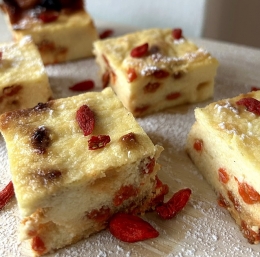 Na koncu vmešamo goji jagode in beljake, prelijemo v pekač in pečemo 45 minut na 200⁰C.
