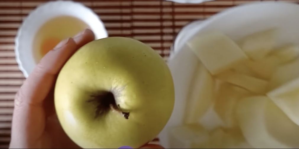 1. V mešalnik dajte narezana in olupljena jabolka. V mešalnik dajte četrto jabolko in ga zmešajte.