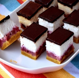 Zmešamo z instant pšeničnim zdrobom (zdrobom) in premažemo po jajčno-biskvitni zmesi.