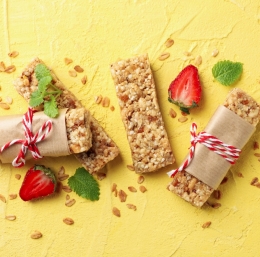 Granola ploščice pred serviranjem narežemo za pravokotnike ali kvadrate.