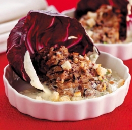 Grenki radič se lepo ujame s kremasto sirovo omako.