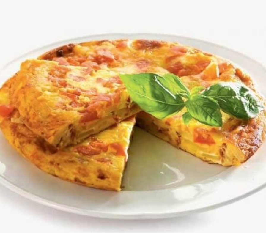 Slastna krompirjeva omleta, ki je lahko kosilo ali malica.