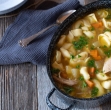Dodajte še preostalo piščančjo juho, pokrijte in pustite, da enolončnica na nizkem ognju vre približno 15–20 minut.