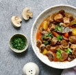 Mešanico zavrite, nato pa vrnite pečene kose piščanca v lonec skupaj s krompirjem.