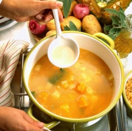 Jedi dodajte rezine surovega krompirja ali jabolka, odvisno od tega, za kakšno jed gre.