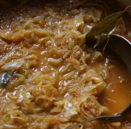 – 1 kg kislega zelja – 0,7 kg svinjskega mesa – 1 žlica svinjske masti – 2 čebuli – 2 stroka česna – lovorov list – 1 žlica sveže mlete zelenjave (kašče) – 1 žlica paradižnikove mezge