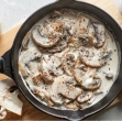 2 Ponev s čebulo odstavimo z ognja, dodamo moko in vodo, vrnemo na štedilnik in hitro mešamo, da se ne naredijo grudice. Ko se zgosti, dodamo smetano za kuhanje in kislo smetano. Še malo pokuhamo, da zavre ter postrežemo.