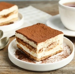 3 Tiramisu pokrijemo in postavimo v hladilnik za najmanj 4 ure, da se dobro prepoji. Preden ga postrežemo, ga posujemo s kakavom v prahu.