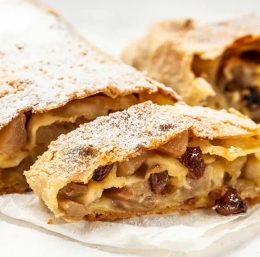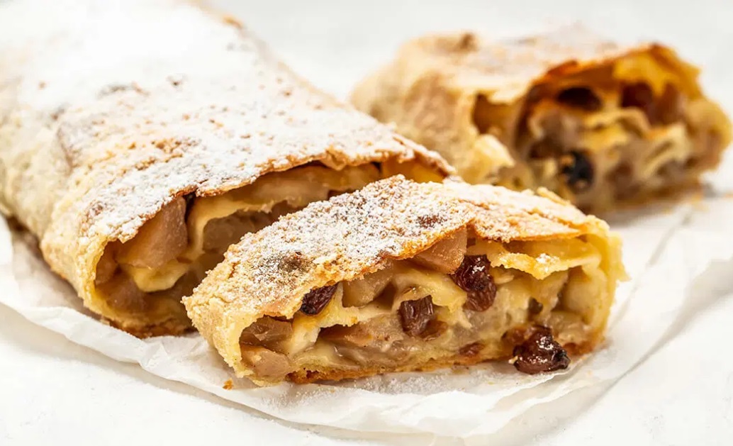 Jabolka operemo, olupimo, jim odstranimo pečke in jih naribamo. Dodamo sladkor, cimet, rozine in limonino lupinico. Premešamo. V ponvi segrejemo nekaj masla, dodamo drobtine in jih prepražimo. Drobtine z maslom namažemo po polovici testa. Na namazan del testa damo jabolčni nadev in zavitek zvijemo. Zvijati začnemo na namazanem delu.