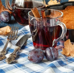 15 sliv 5 cimetove palčke 10 žlic sladkorja 3 dl slivovega čaja 1 buteljka suhega rdečega vina amaretto ali rum pomarančna ali limonina lupinica