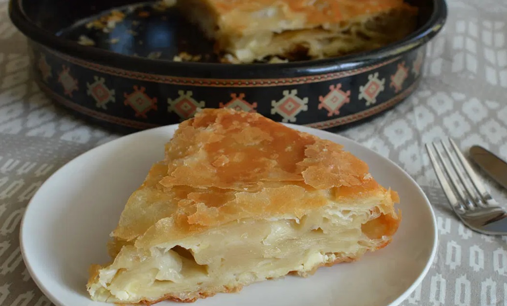 400 g sira (polovica feta sira, polovica skute) 15 ploskev listnatega testa skodelica grobo nasekljanega peteršilja 3 jajca 1/2 skodelice mleka 300 g masla sol