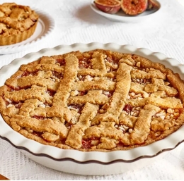 Figova pita in njen okusFigova pita je čudovito sladka, z nežno kislostjo od limoninega soka in s svežino jabolk. Testo je hrustljavo in rahlo masleno zaradi masla in mletih mandljev, kar dopolnjuje bogat nadev iz fig, jabolka in mandljev. Med in sladkor dodata sladkost, ki se lepo prepleta s sadnimi okusi. Celotna kombinacija ustvarja harmoničen in privlačen okus. Figova pita je posebna iz več razlogov: - Edinstven nadev:Kombinacija fig, jabolk in mandljev za nadev je edinstvena. Figove pite niso tako pogoste in dodatek jabolk in mandljev prinese kompleksnost okusa.