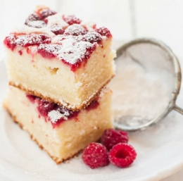Malo ga ohladimo, posujemo s sladkorjem v prahu in okrasimo s svežimi malinami ter postrežemo.