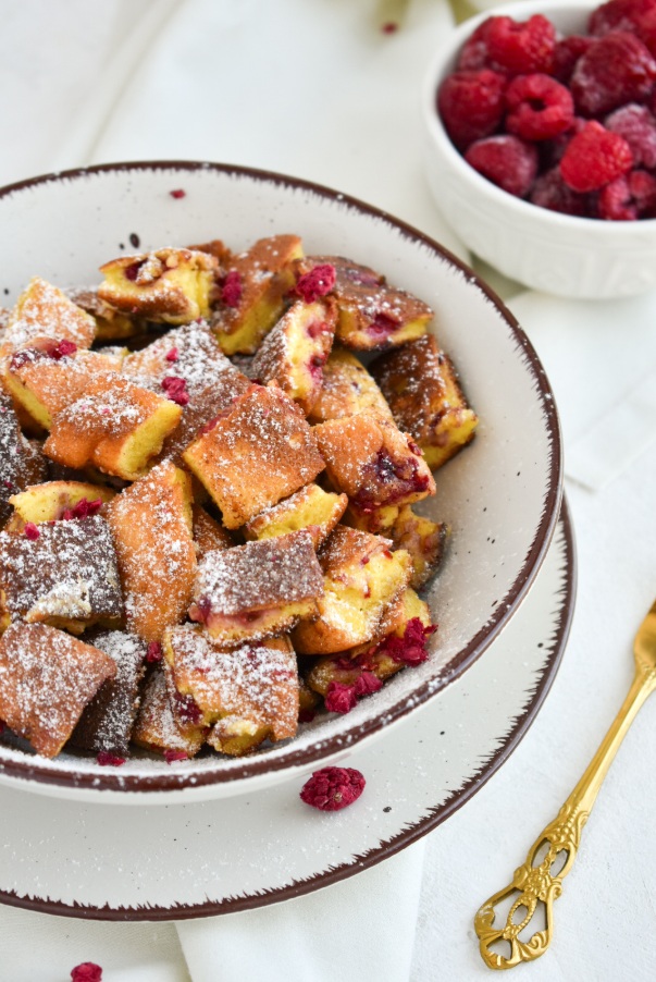 Ko si zaželite šmorn za zajtrk ali kar tako vmes, je tukaj odličen recept za najbolj okusen in puhast šmorn brez glutena. Maline še bolj popestrijo okus, s svojim kislim pridihom.